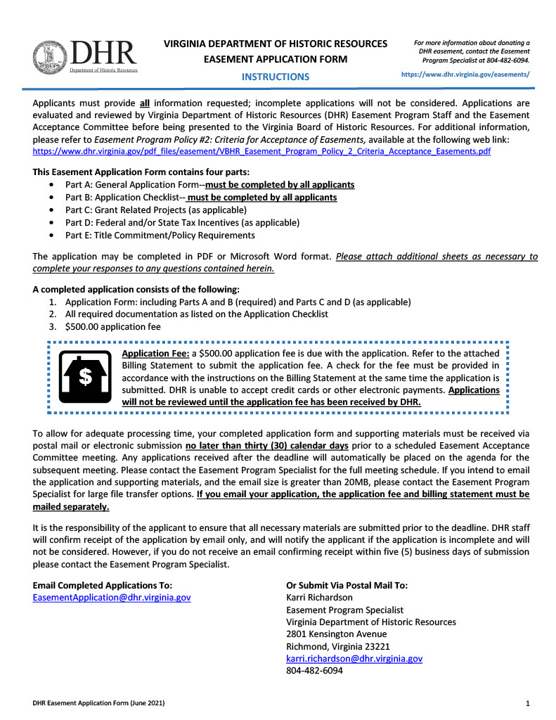 Le programme de servitude du DHR permet aux propriétaires de protéger volontairement l'intégrité historique, architecturale et archéologique de leur propriété en y plaçant une servitude de préservation permanente. La servitude restreint le développement futur de la propriété, interdit certaines activités et exige l'approbation préalable d'autres activités. À l'exception des droits auxquels il renonce expressément, le propriétaire foncier continue de posséder, d'utiliser et de contrôler le terrain.