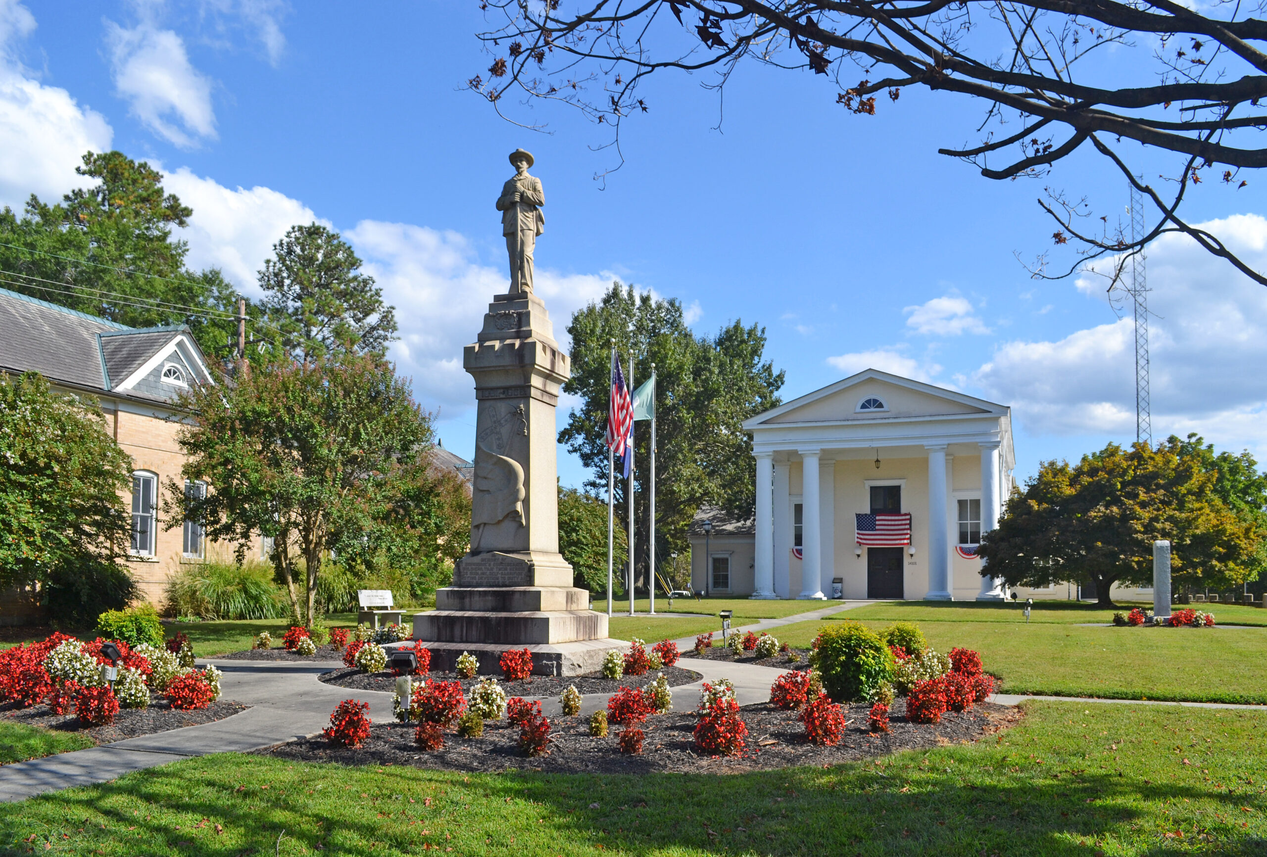 Depuis son achèvement en 1851, ce bâtiment public simple de style néo-grec est le point central de l'architecture de ce siège du comté de Southside, anciennement connu sous le nom de Dinwiddie Court House. Le palais de justice du comté de Dinwiddie a été décrit comme un "bâtiment très soigné et savoureux" lors de son ouverture, faisant "grand honneur au constructeur". Le palais de justice a été remodelé en 1858 lorsque son intérieur a été divisé en deux étages et que la salle d'audience a été déplacée au niveau supérieur. En mars, 1865, le général de l'Union Philip Sheridan, à la tête de ses troupes pour attaquer Petersburg, a été temporairement bloqué au palais de justice par le major Sheridan. Général George E. Pickett. Le lendemain, 1, les deux commandants s'affrontent à nouveau à Five Forks, où la victoire de l'Union contraint Lee à évacuer son armée de Petersburg et de Richmond. Le palais de justice du comté de Dinwiddie a reçu son portique dorique en 1933 grâce à l'aide du gouvernement fédéral.