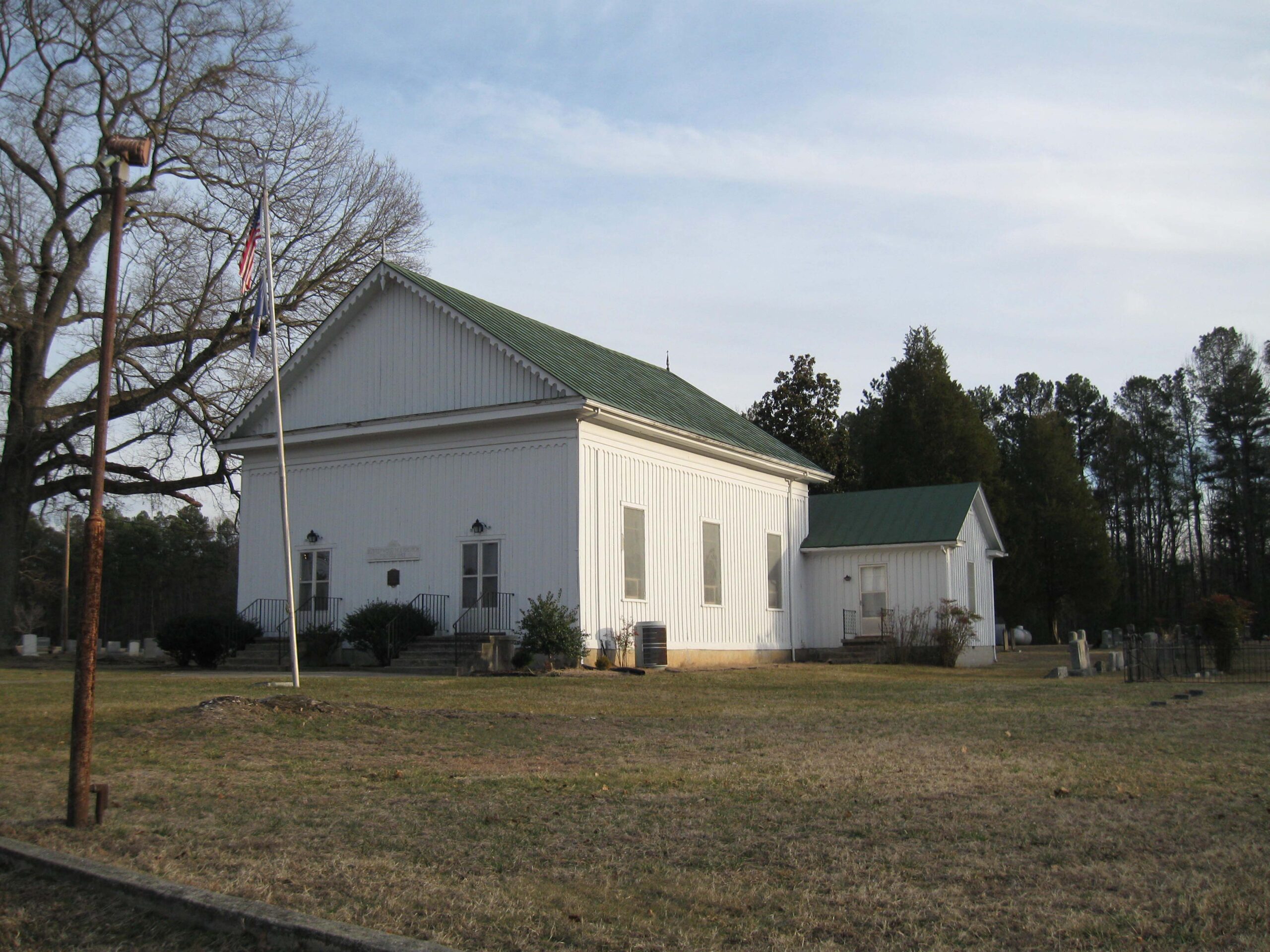 L'église méthodiste de Butterwood, située dans le comté rural de Dinwiddie, était l'une des trois chapelles du 18e siècle de ce qui est devenu la paroisse de Bath à l'adresse 1752. Devereux Jarratt, figure importante du "Grand Réveil", est devenu recteur de la paroisse en 1763 et a prononcé son premier sermon à Butterwood. Le premier bâtiment de l'église méthodiste et du cimetière de Butterwood a été remplacé par l'actuel bâtiment pittoresque de style gothique de Carpenter en 1866-67. Elle a été construite par William Randolph Atkinson, dont les outils de charpentier sont conservés dans l'église. À la veille de la Seconde Guerre mondiale, 48,000 acres du comté de Dinwiddie et des comtés voisins ont été acquis par le gouvernement américain pour créer le Camp Pickett (anciennement Fort Pickett et Fort Barfoot). De cette zone, les tombes de deux églises et de nombreuses fermes ont été déplacées vers des sites situés à la limite de la réserve de Pickett. Environ un millier de tombes des cimetières blancs ont été déplacées sur un terrain adjacent au cimetière d'origine de Butterwood, et environ 2,000 des cimetières afro-américains sur une parcelle séparée de la route 613 près de Darvills. Le cimetière de Butterwood symbolise le sacrifice consenti par cette communauté rurale dans le cadre de l'effort de guerre.