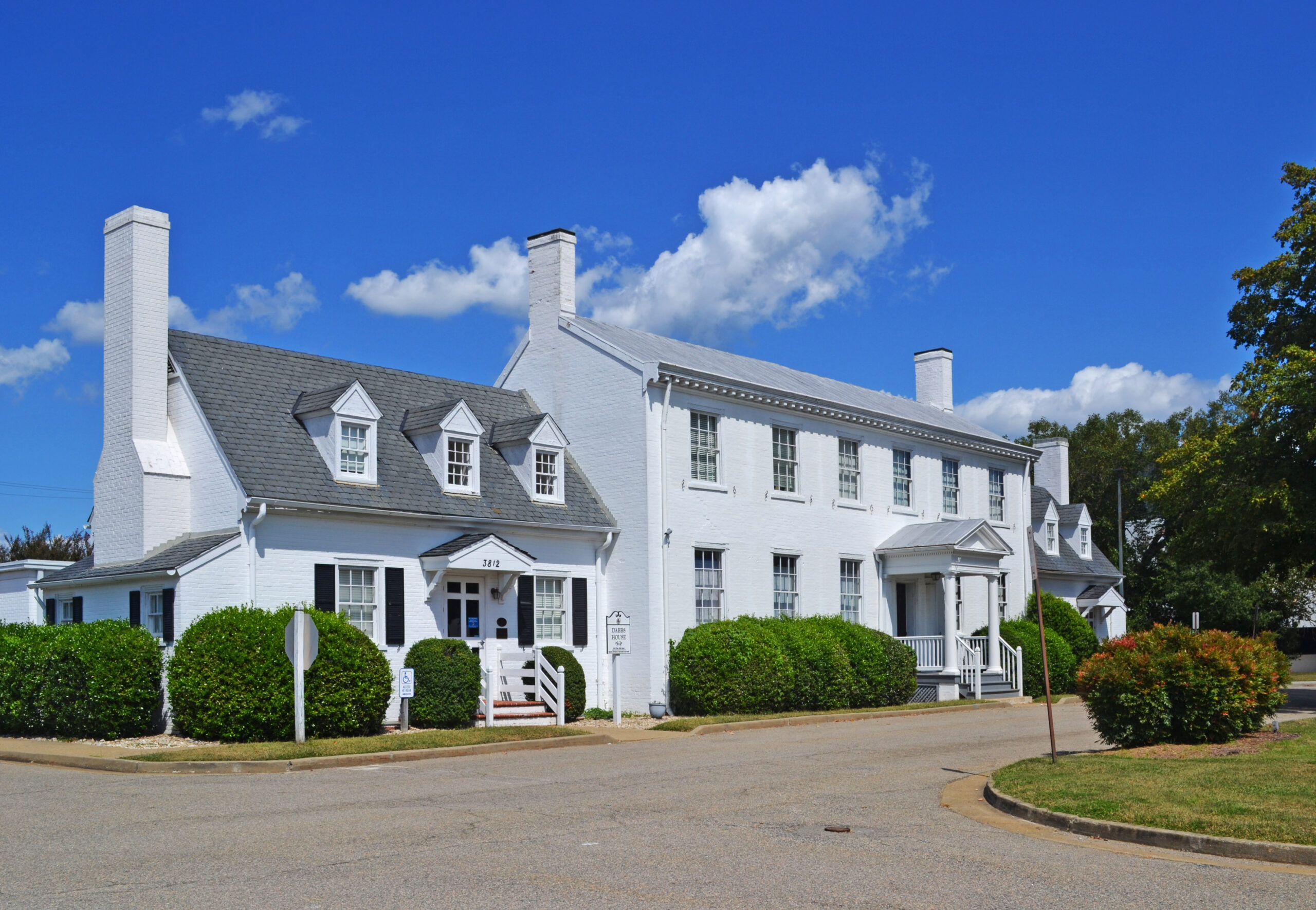 La maison Dabbs, située sur la Nine Mile Road dans le comté de Henrico, a connu une histoire aux multiples usages. Il a vu le jour à l'adresse 1820 sous la forme d'une ferme de deux étages, trois baies, à pignon latéral et à plan de passage latéral, connue sous le nom de High Meadow. Pendant la campagne de la péninsule menée par le général George B. McClellan ( 1862 ) pour capturer la capitale confédérée de Richmond, le général confédéré Robert E. Lee a installé son quartier général dans la maison Dabbs. Lee y prit le commandement de l'armée confédérée après l'avoir cédé au général Joseph Johnston. Le président confédéré Jefferson Davis et le commandant de la cavalerie, le général J. E. B. Stuart, rendent visite à Lee à Dabbs House, où un conseil de guerre se réunit également pour discuter du sort de Richmond. Cette rencontre aboutit à la bataille des Sept Jours (juin 25- juillet 1, 1862) et à la défaite finale de McClellan. Après la guerre, en 1883, le comté de Henrico a acheté la propriété pour en faire un hospice pour les pauvres et les détenus du comté, et l'a fermée en 1924. En 1941, grâce à un financement partiel de la Works Progress Administration, le comté a transformé la propriété en bureaux et en poste de police. Pendant la guerre froide, à l'adresse 1965, le comté a installé derrière la maison un centre d'opérations d'urgence souterrain - le premier de ce type en Virginie construit par un gouvernement local - auquel on pouvait accéder par une annexe à l'arrière de la maison. À partir de 2005, la maison Dabbs a servi de musée du comté et de centre d'accueil des visiteurs. Les caractéristiques architecturales de la section 1820s-1860s du bâtiment et un bâtiment d'une hauteur d'environ 1,5 mètre. 1883 ainsi que les ailes 1941 et 1952 ajoutées par le célèbre architecte de la région Edward F. Sinnott, Sr. présentent toujours leur conception et leur exécution d'époque.