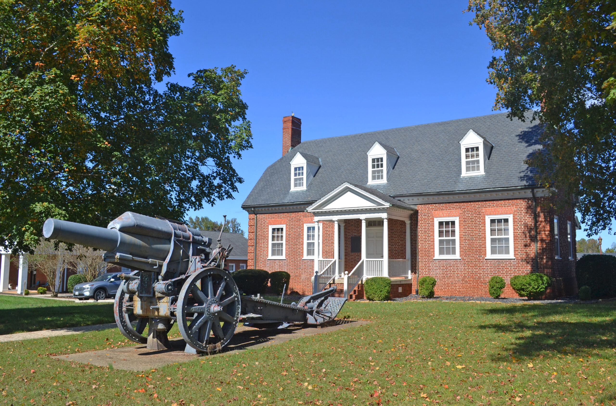 Ce chef-lieu de comté rural du Southside, qui n'est encore guère plus qu'un carrefour, est dominé par son digne palais de justice néo-roman, l'un des nombreux bâtiments publics qui reflètent l'influence du classicisme strict de Thomas Jefferson sur la Virginie rustique. La commission chargée de superviser le projet a demandé que le palais de justice du comté de Lunenburg s'inspire du palais de justice du comté de Charlotte, récemment achevé et conçu par Jefferson lui-même. Les constructeurs William A. Howard et Dabney Cosby, Sr. se sont acquittés admirablement de leur tâche et ont achevé la conception académique correcte à l'adresse 1827. Ici, le majestueux ordre dorique romain a été utilisé plutôt que l'ordre toscan plus habituel. L'escalier extérieur a été ajouté en 1850 lorsque l'intérieur a été divisé en deux niveaux. Une abside d'origine a été plus tard encastrée dans une extension. 19Entourée de terres agricoles, la petite localité de Lunenburg Court House offre une image mémorable avec le portique étincelant du palais de justice qui domine les quelques structures du siècle dernier.