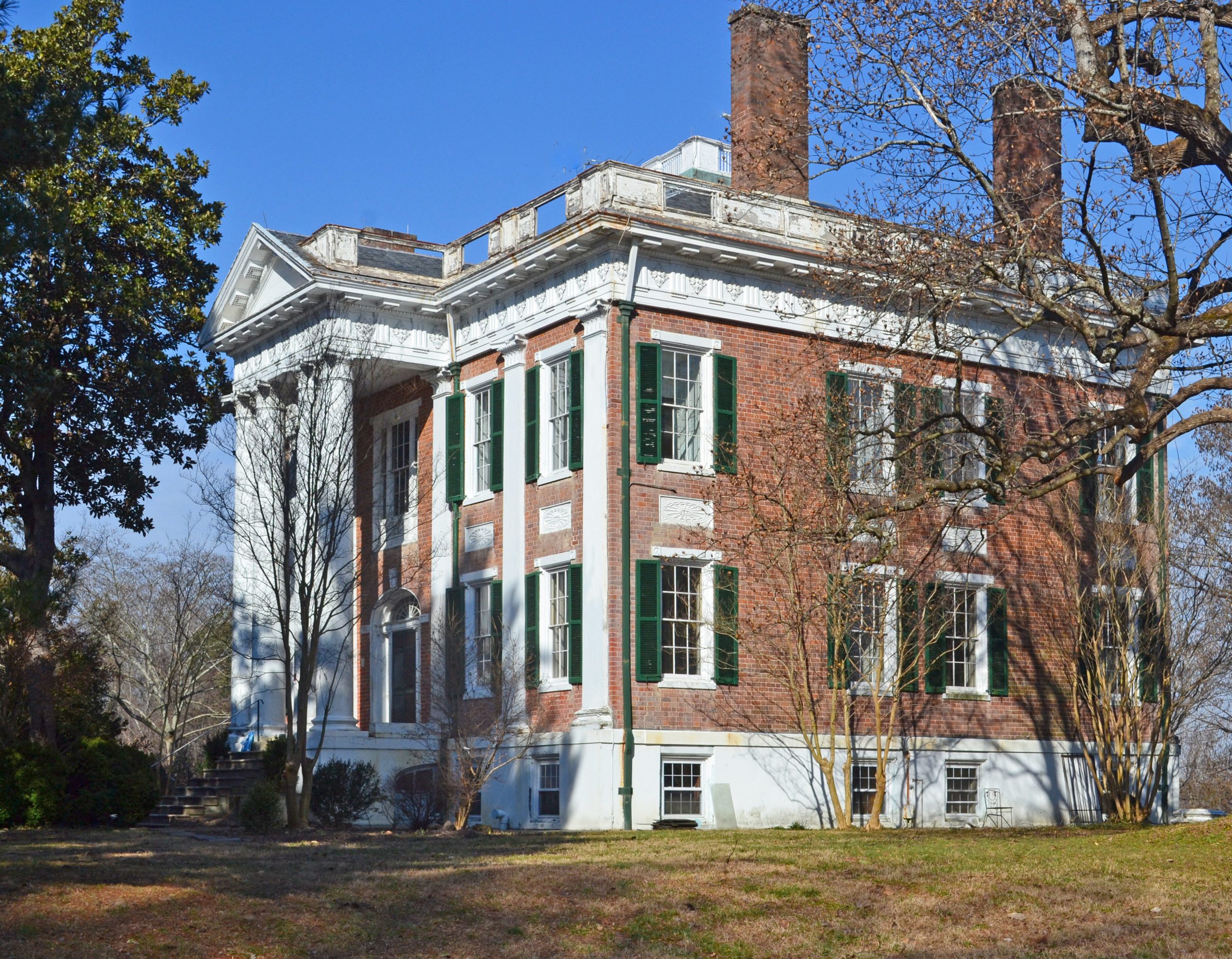 Siège d'un domaine de 1,000-acre situé à la limite ouest du comté de New Kent avec le comté de Hanover, Hampstead a été construit vers. 1825 pour le planteur Conrade Webb. Toute la dramaturgie du style fédéral se joue dans ce manoir à l'architecture puissante, l'une des œuvres les plus ambitieuses et les plus accomplies de l'État pour cette période. Toutes les caractéristiques de la maison - les détails classiques délicats, les proportions monumentales et les magnifiques maçonneries et menuiseries - témoignent d'une qualité supérieure. L'intérieur est dominé par un escalier circulaire volant qui serpente du sous-sol au grenier et qui est séparé du hall par un écran de colonnes. Le concepteur de Hampstead n'a pas été identifié, mais la maison présente de nombreux parallèles avec les œuvres de John Holden Greene de Providence, Rhode Island. Comme dans plusieurs bâtiments de Greene, une grande partie des détails de Hampstead suit les illustrations de l'American Builder's Companion d'Asher Benjamin (1806). Conrade Webb a fréquenté l'université de Brown et aurait très bien pu demander l'aide du principal architecte de Providence pour mener à bien une entreprise aussi singulière.