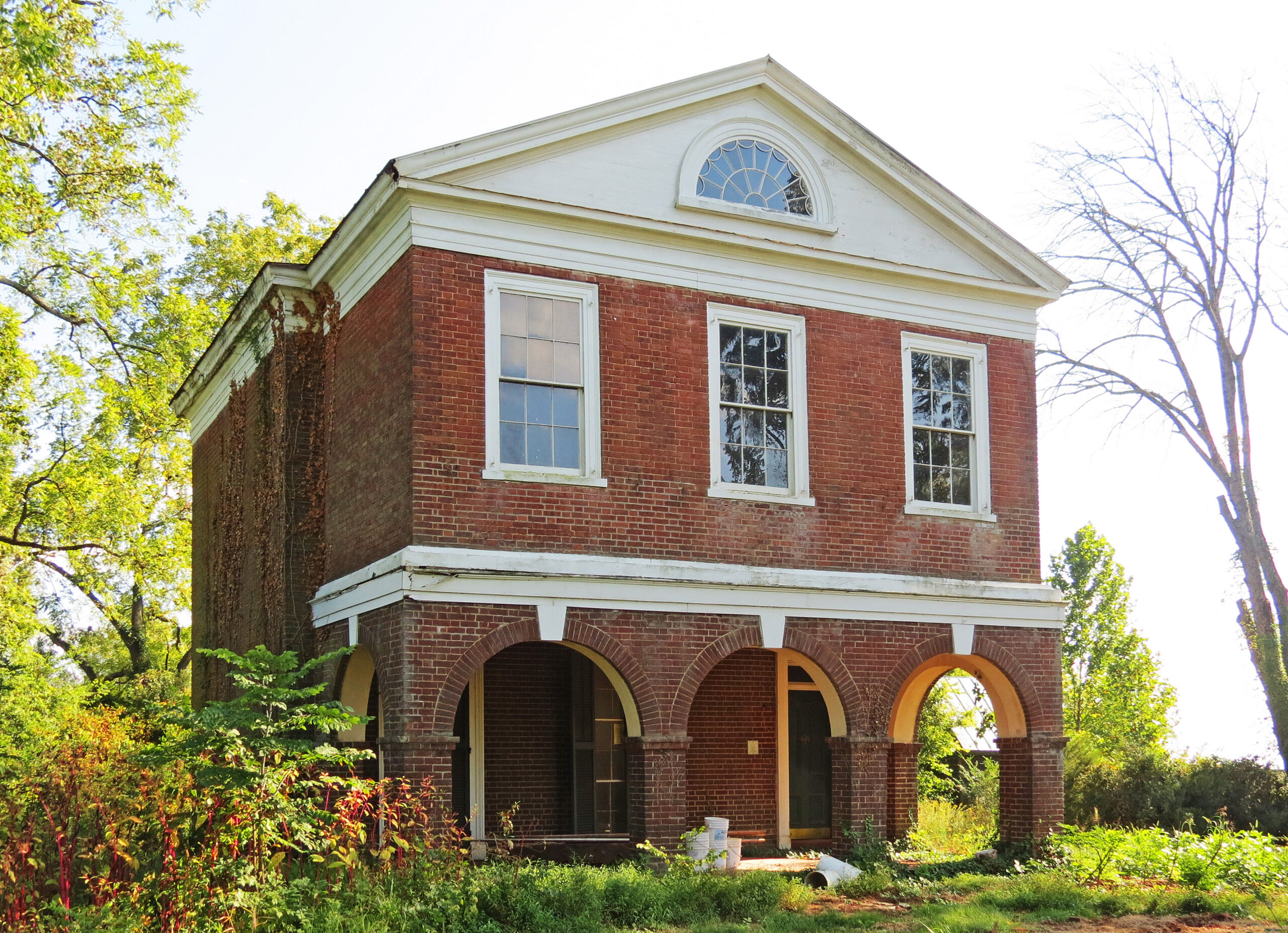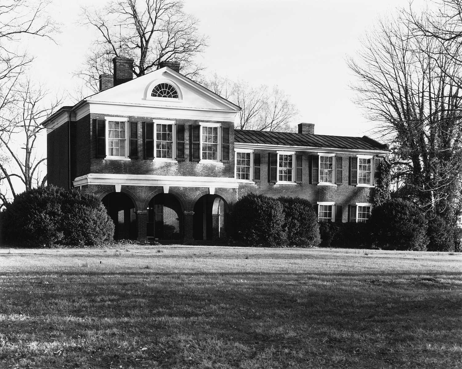 Sur une colline ombragée surplombant le sud de la ville d'Orange, Berry Hill est une maison de style Jeffersonien attribuée à William B. Phillips et Malcolm F. Crawford, maîtres d'œuvre employés par Thomas Jefferson lors de la construction de l'Université de Virginie. À l'origine, la maison avait un portique ouvert au-dessus du rez-de-chaussée à arcades et ressemblait donc beaucoup au Pavillon VII de l'université. Le portique a été muré peu après l'achèvement de la maison en 1824 pour Reynolds Chapman, le greffier du comté. L'aile de deux étages faisait toutefois partie de la construction d'origine (l'aile a été démolie vers le milieu du XIXe siècle). 2023). Même sous sa forme modifiée, la maison est l'une des adaptations les plus réussies de l'idiome de Jefferson pour une résidence privée. Bien que Phillips et Crawford n'aient pas été documentés comme ayant travaillé à Berry Hill, ils étaient connus de Chapman et construisaient des structures de style Jefferson dans la région à l'époque.