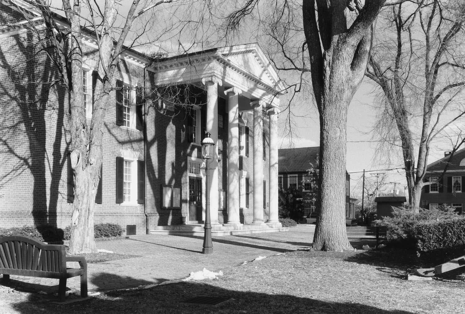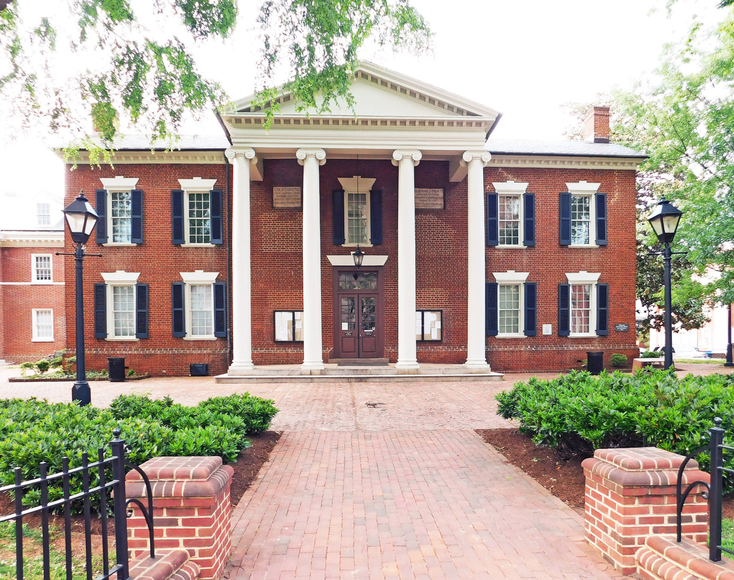 La principale caractéristique du district historique compact du palais de justice du comté d'Albemarle, situé dans le centre-ville de Charlottesville, est Court Square, centre de l'activité du comté depuis qu'il a été aménagé sur le site 1762. Au début des années 1800, il n'était pas rare de voir Thomas Jefferson discuter ici avec James Madison et James Monroe. Sur la place se trouve le palais de justice du comté de 1803, qui servait également à l'origine d'église communautaire où Jefferson assistait parfois aux offices. Autour de la place, des cabinets d'avocats, des résidences et des tavernes ont vu le jour au milieu du siècle dernier (19), parmi lesquels l'ancienne Taverne du Cygne et l'ancienne Taverne de l'Aigle. L'hôtel de ville néo-classique 1851 a été acheté par Jefferson M. Levy, alors propriétaire de Monticello, et transformé en Levy Opera House en 1887. À l'exception du bâtiment à plusieurs étages de l'hôtel Monticello, le quartier conserve une échelle cohérente et une harmonie architecturale.  Le district historique du palais de justice du comté d'Albemarle est au centre du district historique du palais de justice de Charlottesville et du comté d'Albemarle, qui est beaucoup plus vaste.