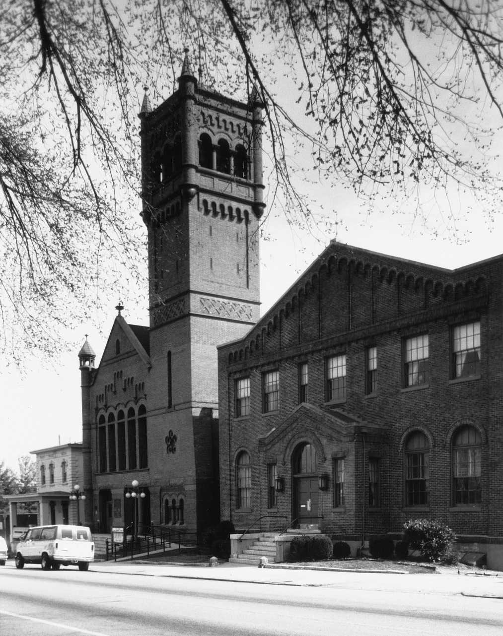 Rappelant les sombres édifices médiévaux de l'Italie du Nord, la Main Street Methodist Episcopal Church South de Danville, "l'église mère du méthodisme", est l'une des œuvres les plus ambitieuses de l'architecture victorienne dans une ville réputée pour ce type d'ouvrages. La composition néo-romane est dominée par un campanile de 87pieds de haut, doté de bartizans, de mâchicoulis et d'arcades. Ces mêmes éléments embellissent la façade, celle d'un vaste sanctuaire. Située dans le district historique de Danville, l'église méthodiste unie de Main Street a été commencée en 1865 et achevée par l'entrepreneur Henry Exall en 1873. Les grandes églises qui ont suivi dans le quartier ont incité les méthodistes à remodeler leur église pour en faire un lieu beaucoup plus grandiose. Les travaux, entrepris entre 1890et91, ont abouti à la façade et à la tour actuelles, attribuées à l'architecte William M. Poindexter. L'entrepreneur était J. R. Pleasants. L'ouvrage achevé est, entre autres, un chef-d'œuvre de maçonnerie victorienne. Le bâtiment éducatif adjacent ( 1923 ) a été conçu par J. Bryant Heard de Danville.