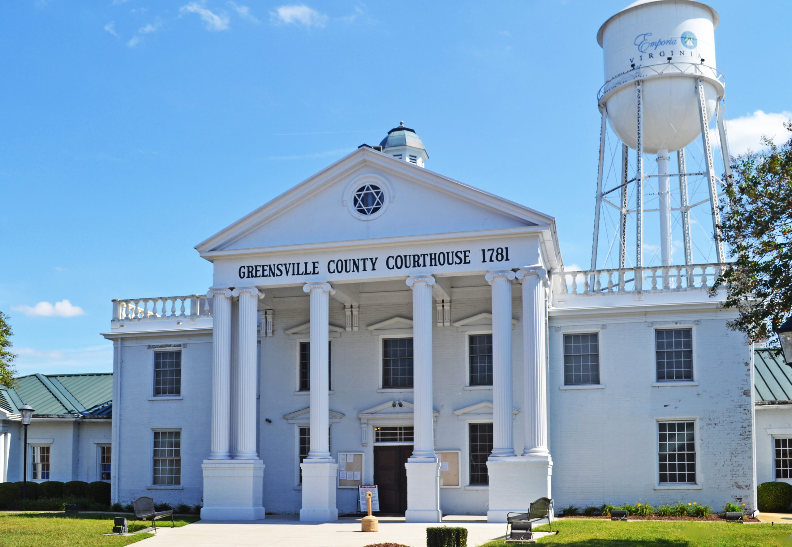 L'Old Merchants and Farmers Bank Building de la ville d'Emporia, achevé en 1902, est une version miniature des structures commerciales qui conféraient aux rues principales de l'Amérique du début du20e siècle une dignité architecturale. Même une structure aussi petite pouvait donner une impression de monumentalité grâce à l'utilisation d'un toit mansardé et d'une corniche fantaisiste en tôle, fabriquée ici localement par H. T. Klugel and sons. La corniche est un exemple de la manière dont un riche effet architectural peut être obtenu avec un minimum de coûts et d'efforts. Le bâtiment a été utilisé comme banque jusqu'à 1920 et comme cabinet d'avocats jusqu'au milieu des années1940. Elle est ensuite devenue la bibliothèque locale de la ville d'Emporia. En 1978, le comté de Greensville a cédé le bâtiment à la Greensville Historical Society. Situé dans le quartier historique de Hicksford, l'Old Merchants and Farmers Bank Building a été transformé en musée d'histoire locale à l'adresse 1994.