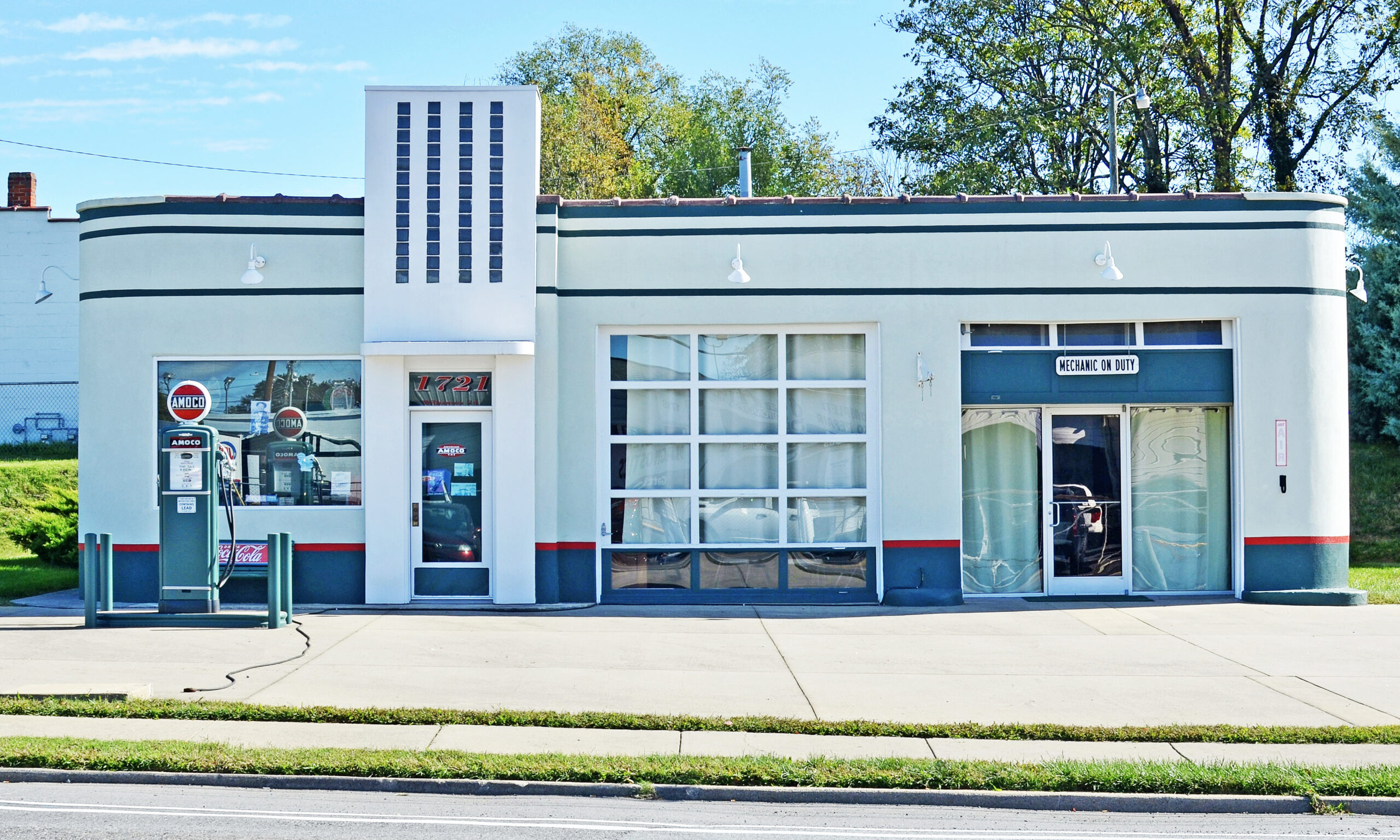 Construite vers 1947 dans le style "boîte glacée" initié par Texaco, la station Amoco de Carlin a été remodelée en 1953 par l'American Oil Company (Amoco) en un design "boîte stylisée" par l'ajout de caractéristiques "Streamlined Moderne" telles que des coins arrondis et des bandes verticales de blocs de verre rétro-éclairés par des tubes de néon verts. Le bâtiment représente les efforts agressifs déployés par les compagnies pétrolières, à partir des années 1930, pour commercialiser et vendre leurs produits par l'intermédiaire de stations-service qui mettaient en avant l'identité et les marques de chaque entreprise. Basé sur un prototype de l'entreprise, l'Amoco de Carlin transmet une impression d'efficacité, de propreté et de service fiable. Le bâtiment illustre également l'essor des services et des biens liés à l'automobile au milieu du20e siècle, le long de l'une des principales artères de Roanoke (U.S. 11/Williamson Rd.). La station Amoco de Carlin a été répertoriée dans la documentation sur les stations-service historiques de Roanoke (Historic Gas Stations of Roanoke Multiple Property Documentation).