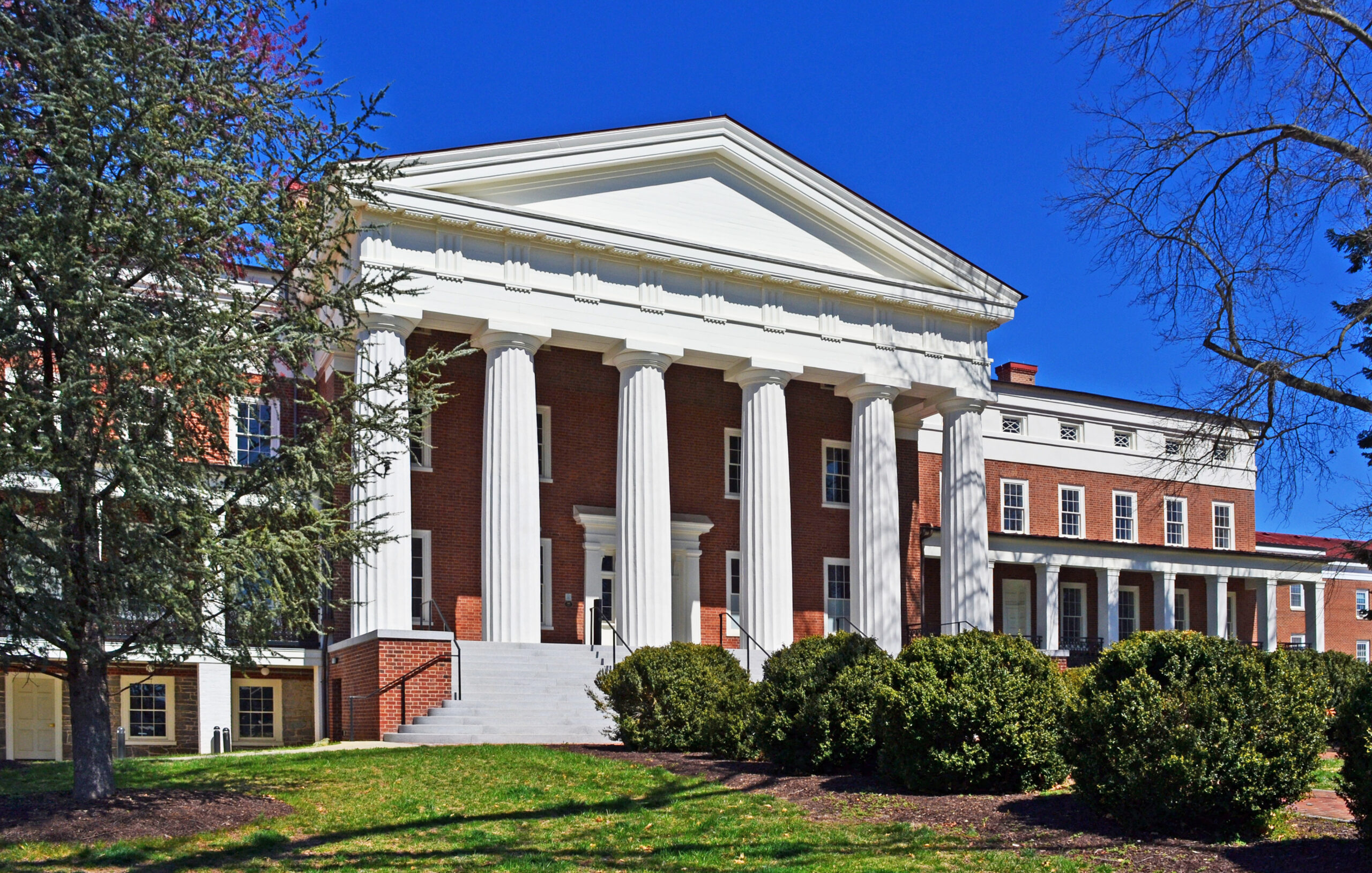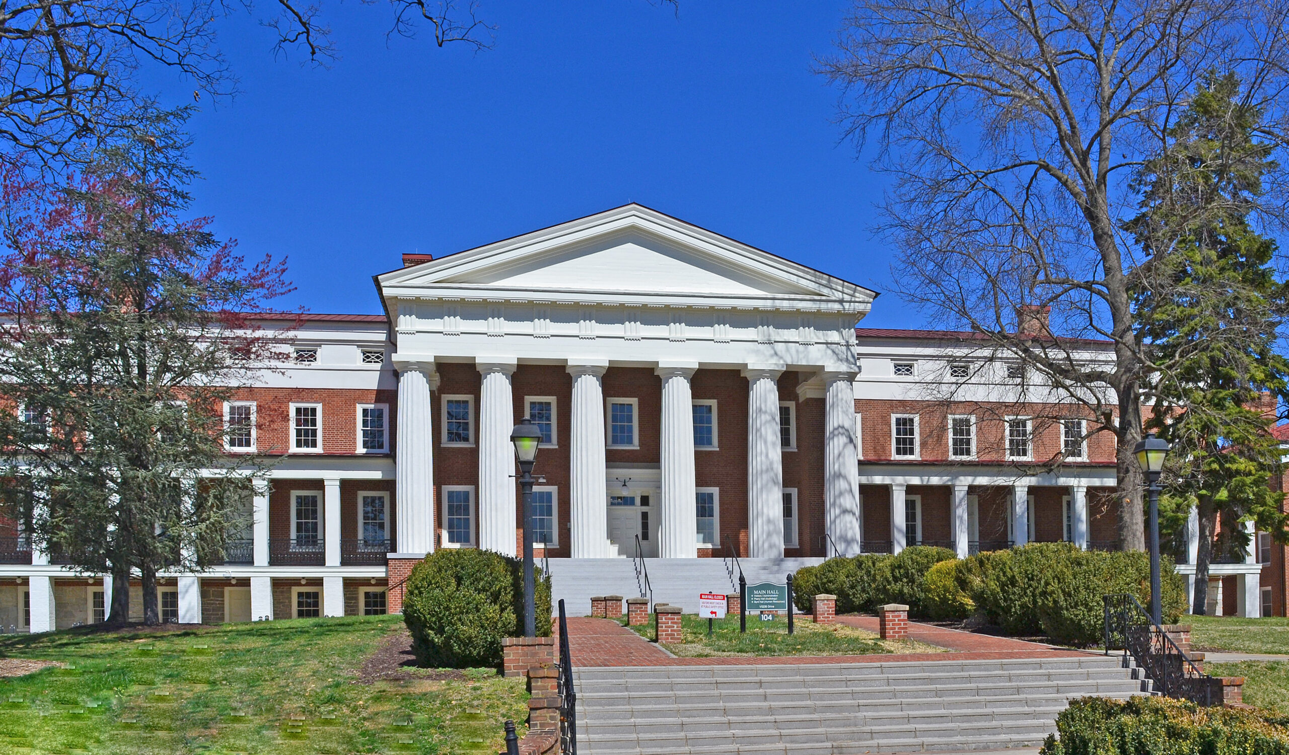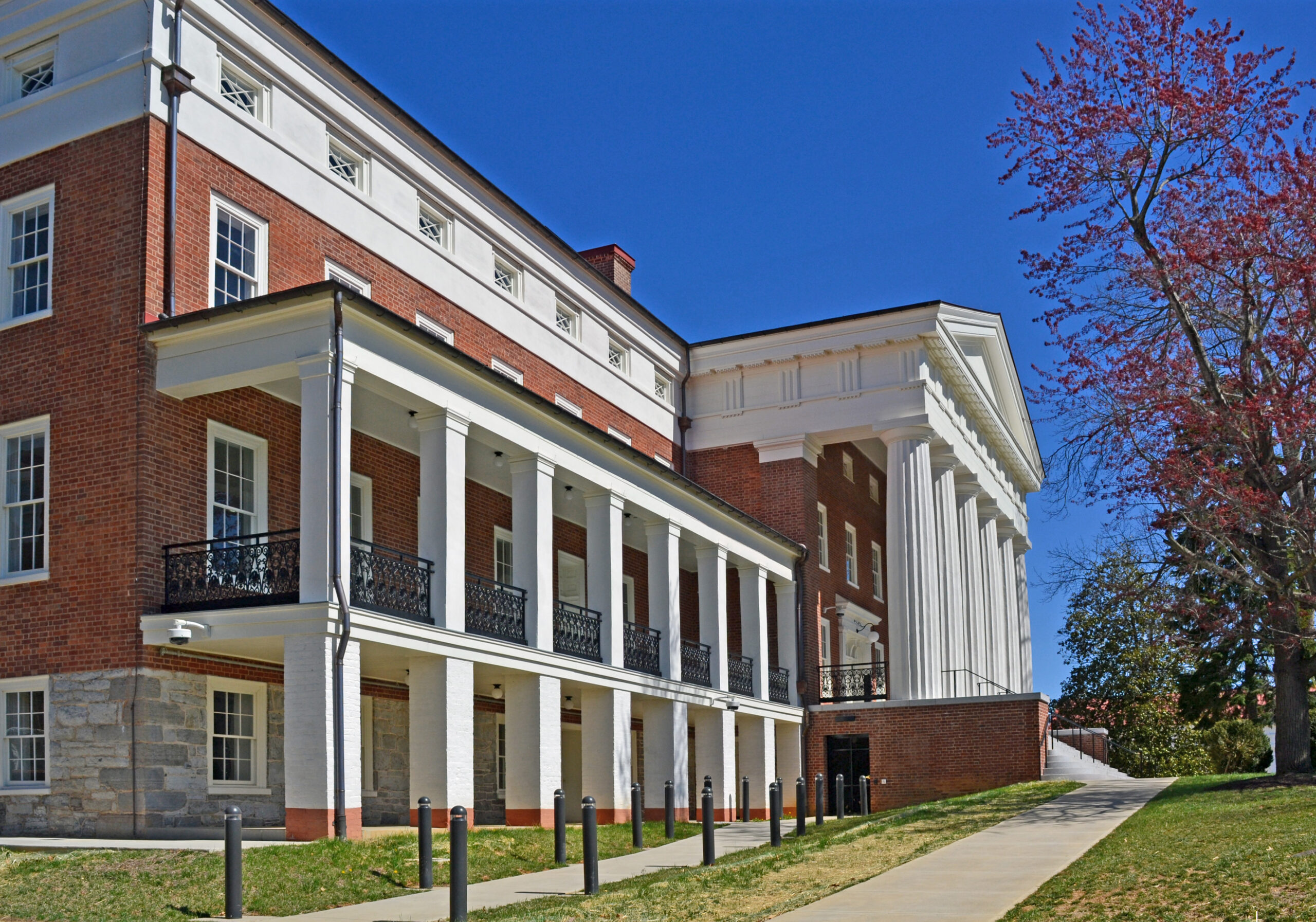 Le splendide bâtiment principal de l'école pour sourds et aveugles de Virginie, à Staunton, témoigne de la grande qualité de l'architecture ancienne de bon nombre d'établissements publics de Virginie. Fondée en 1838, l'institution n'a vu la touche finale apportée à son immense structure centrale qu'en 1846. La ville de Staunton a été choisie pour accueillir l'école en raison de sa situation centrale et parce qu'elle se trouve au milieu d'une "campagne abondante et bon marché". Le bâtiment principal a été conçu par Robert Cary Long Jr, un architecte de Baltimore dont la maîtrise du style néo-grec est évidente dans le puissant portique dorique hexagonal, ainsi que dans les proportions et les détails du reste du bâtiment. L'entrepreneur de cette ambitieuse entreprise était William Donoho, du comté d'Albemarle. Le bâtiment principal reste la structure principale de cette institution humanitaire pionnière.