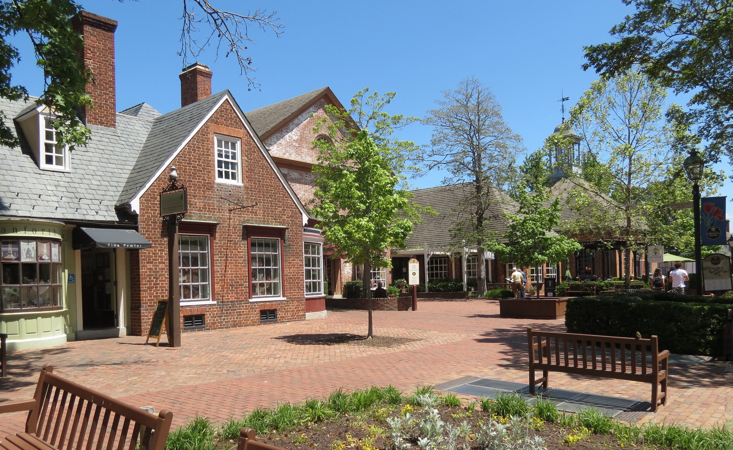 John D. Rockefeller Jr, visionnaire et financier de la création de Colonial Williamsburg, a soutenu la planification et la construction des propriétés commerciales contenues dans le Merchants Square and Resort Historic District. Rockefeller envisageait Merchants Square comme une zone de vente au détail et de services d'accueil pour les visiteurs de Colonial Williamsburg, qui était situé à côté. Merchants Square a également servi de nouvel emplacement pour de nombreux magasins et bureaux du centre-ville qui ont été déplacés hors de la zone historique de Colonial Williamsburg à la suite de sa restauration. La période d'importance du quartier s'étend de 1927, lorsque Rockefeller et ses architectes ont commencé à travailler sur Merchants Square, à 1956, quatre ans seulement avant la mort de Rockefeller. De nombreux bâtiments du district, tels que le musée d'art populaire Abby Aldrich Rockefeller, la Craft House et le Williamsburg Lodge, sont des exemples du style néo-colonial et ont été conçus par des architectes de renommée locale et nationale qui ont dû résoudre le problème de la création de nouveaux bâtiments dans des contextes communautaires historiques qui pouvaient servir à des utilisations et des entreprises modernes. L'aménagement paysager de la place atténue l'impact des automobiles en s'appuyant sur des aires de stationnement paysagées et un accès limité aux véhicules. Merchants Square est donc un ensemble pittoresque de structures conçues pour améliorer l'expérience du visiteur à Colonial Williamsburg.