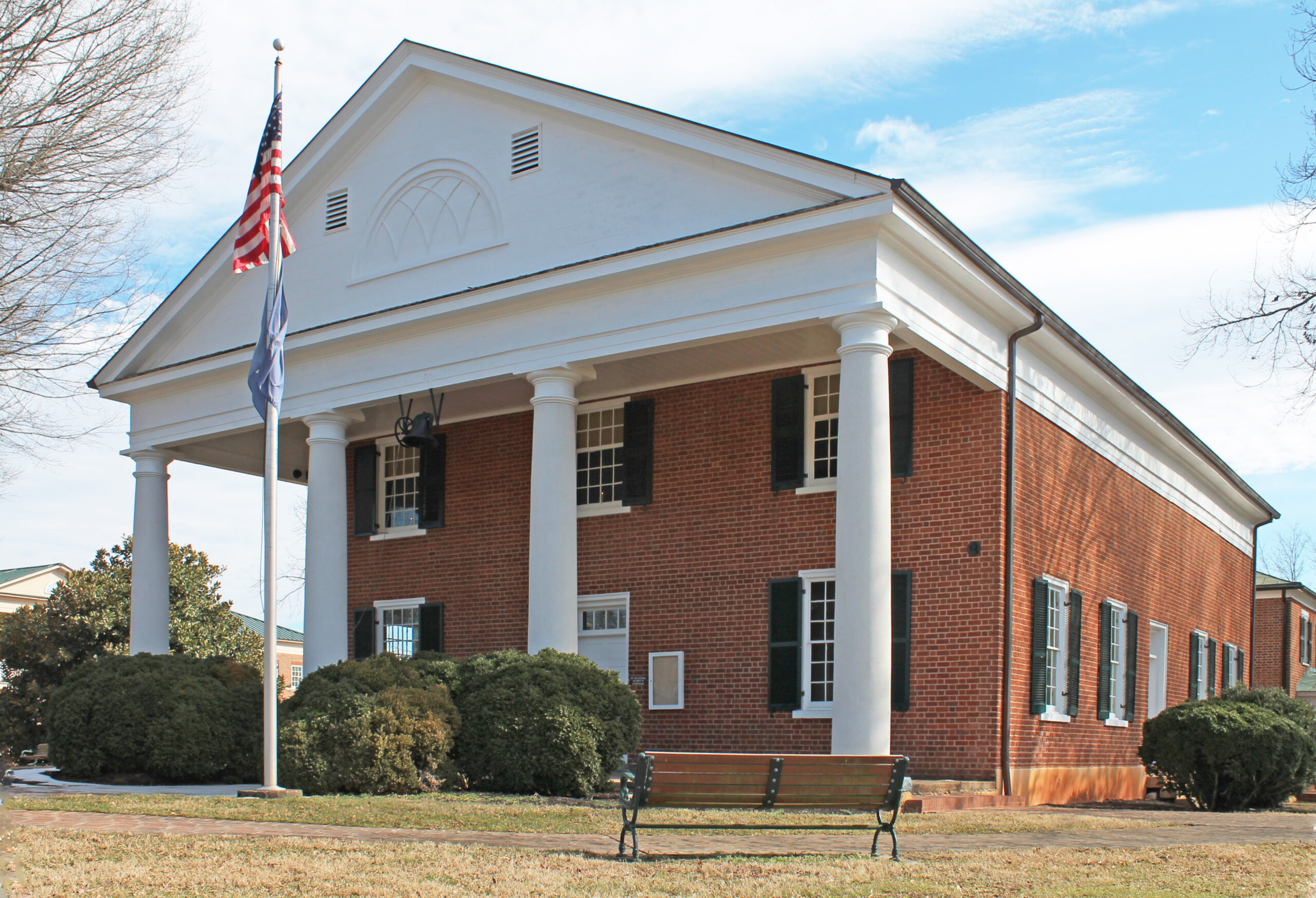 Le palais de justice du comté de Charlotte a été construit en 1822-23 d'après les plans de Thomas Jefferson. Henry Carrington, l'un des commissaires de Charlotte, fut tellement impressionné par le projet de Jefferson pour le palais de justice du comté de Buckingham qu'il persuada le comté de Charlotte de l'adopter. La conception en forme de temple avec son portique toscan répond à l'ambition de Jefferson de voir les institutions gouvernementales locales hébergées dans des modèles de goût architectural. Le bâtiment a été construit par John Percival, qui avait soumissionné pour des travaux à l'université de Virginie, mais qui n'y a apparemment jamais été employé. Bien qu'il ne soit pas certain que Jefferson ait fourni un ensemble de plans distinct pour le palais de justice de Charlotte, le palais de justice tel qu'il a été construit différait de son homologue de Buckingham par plusieurs aspects relativement mineurs. Avec ses briques rouges et ses garnitures classiques blanches, le palais de justice est un bâtiment typiquement virginien qui est encore régulièrement utilisé. Le palais de justice a inspiré plusieurs autres structures judiciaires classiques dans le sud du Piémont.  Le palais de justice est la pièce maîtresse du Charlotte Court House Historic District.
