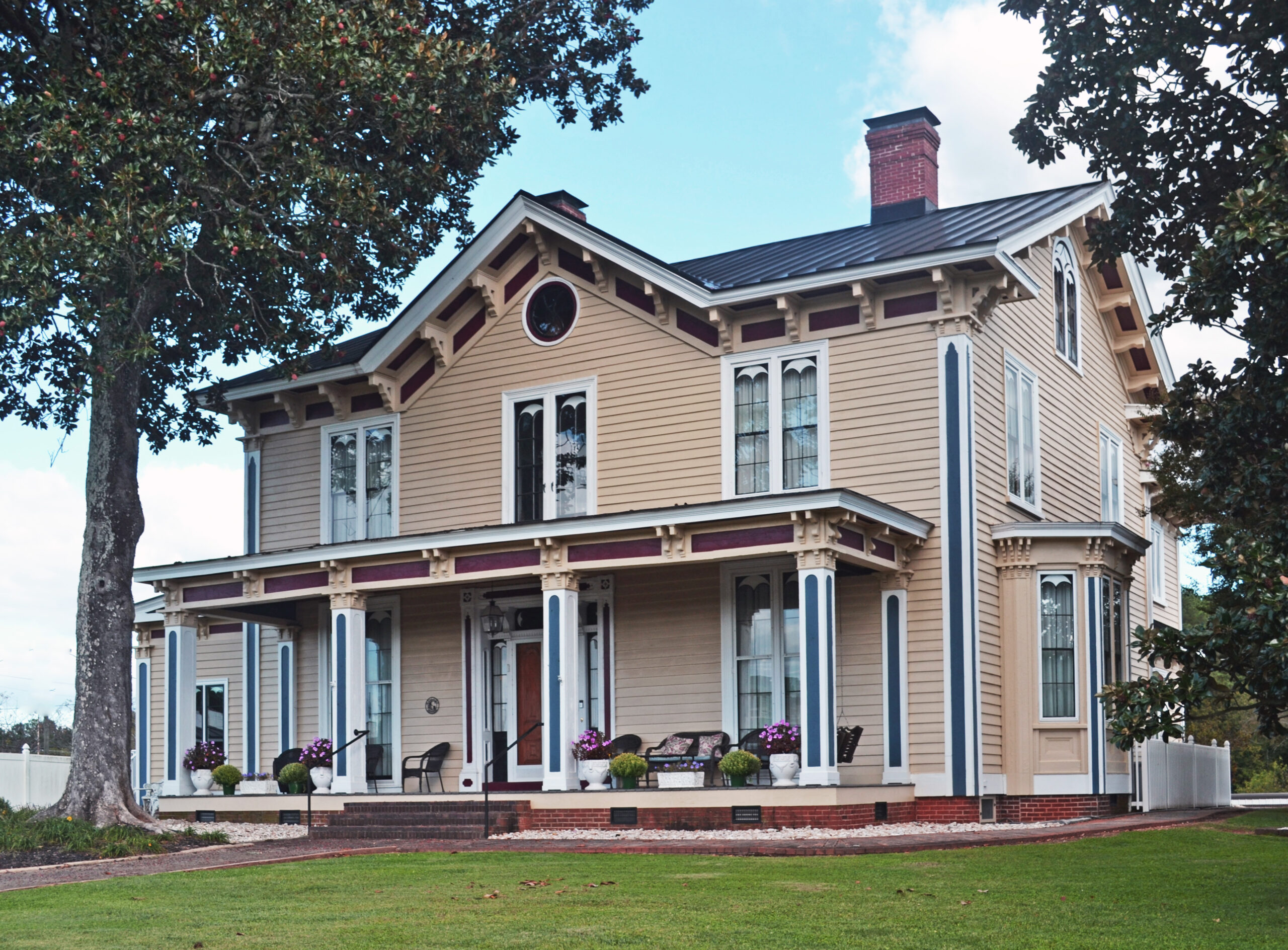 Expression régionale du style italianisant, Shadow Lawn a évolué parallèlement à la transformation de la ville, qui est passée du village carrefour de Christiansville à une colonie prospère d'immigrants du Nord après la guerre civile, rebaptisée Chase City. La maison a commencé ca. 1834 comme la maison de Richard Puryear, un important propriétaire terrien et tenancier d'une taverne locale. Une importante rénovation de la maison a été entreprise en 1869-70 pour George Endly, le cofondateur de Chase City, qui a déménagé de Pennsylvanie en 1868. Le projet est attribué à Jacob W. Holt, un architecte-bâtisseur né en Virginie qui a travaillé à la fois en Caroline du Nord et en Virginie, créant un ensemble distinctif de structures dans un style italianisant audacieusement orné. En 1902, Shadow Lawn a été intégré au complexe hôtelier Mecklenburg Mineral Springs. L'hôtel a brûlé à 1909. Shadow Lawn est aujourd'hui une résidence privée.