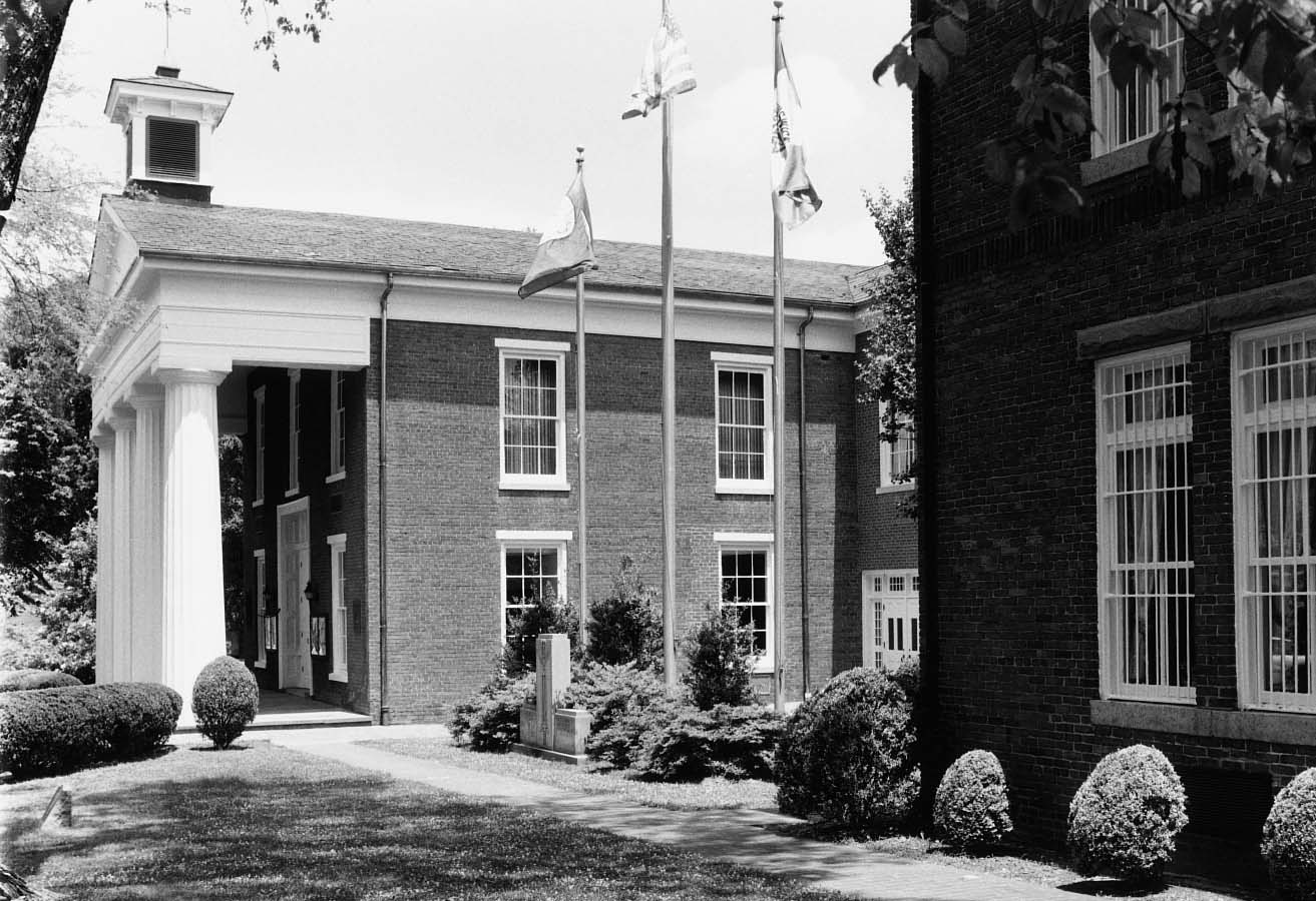 Avec son palais de justice de style grec dorique, son bureau du greffier et sa prison, la place du palais de justice du comté de Brunswick présente les ingrédients essentiels d'un chef-lieu de comté de Virginia du 19e siècle. Le groupe ombragé est le centre de l'activité de la ville et du comté. Lawrenceville est devenu le siège du comté en 1814. À l'adresse 1853, un nouveau palais de justice était nécessaire et un contrat a été passé avec E. R. Trumbull et Robert Kirkland pour la construction d'un bâtiment basé sur le palais de justice du comté adjacent de Mecklenburg. Comme son modèle, le nouveau bâtiment avait la forme d'un temple, mais au lieu d'un portique hexagonal romain ionique, Trumbull et Kirkland ont donné à leur structure un portique tétrastyle dans l'ordre grec dorique, créant ainsi l'une des rares structures de cour néo-grecques du sud de la Virginia. Le bureau du greffier, d'un étage, a été conçu par M. J. Dimmock de Richmond et a été construit en 1893.