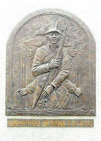 Sculpture en bas-relief sur le monument des Patriotes d'ascendance africaine, Valley Forge, Pennsylvanie.